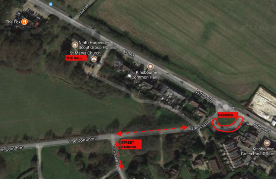 Please do not park in the car parks of The Fox gastropub or the parade of shops that includes the post office. Please also do not park on (or drive along) the track behind the houses that neighbour the church. The main road (Luton Road) is unsafe for parking.